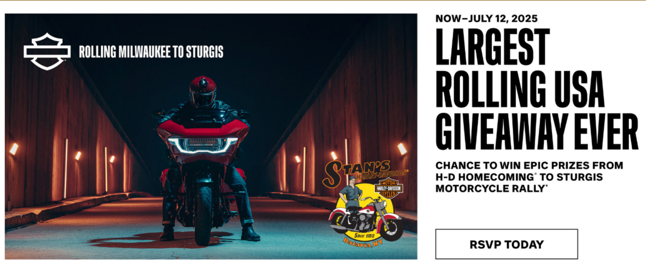 By cutting the Homecoming Festival, Starrs signaled a vital pivot back to the grassroots network, and we are already seeing this executed through campaigns like Rolling USA. Instead of forcing fans to fly to Milwaukee, the Rolling USA promotion brings the activation directly to the showroom floor.
